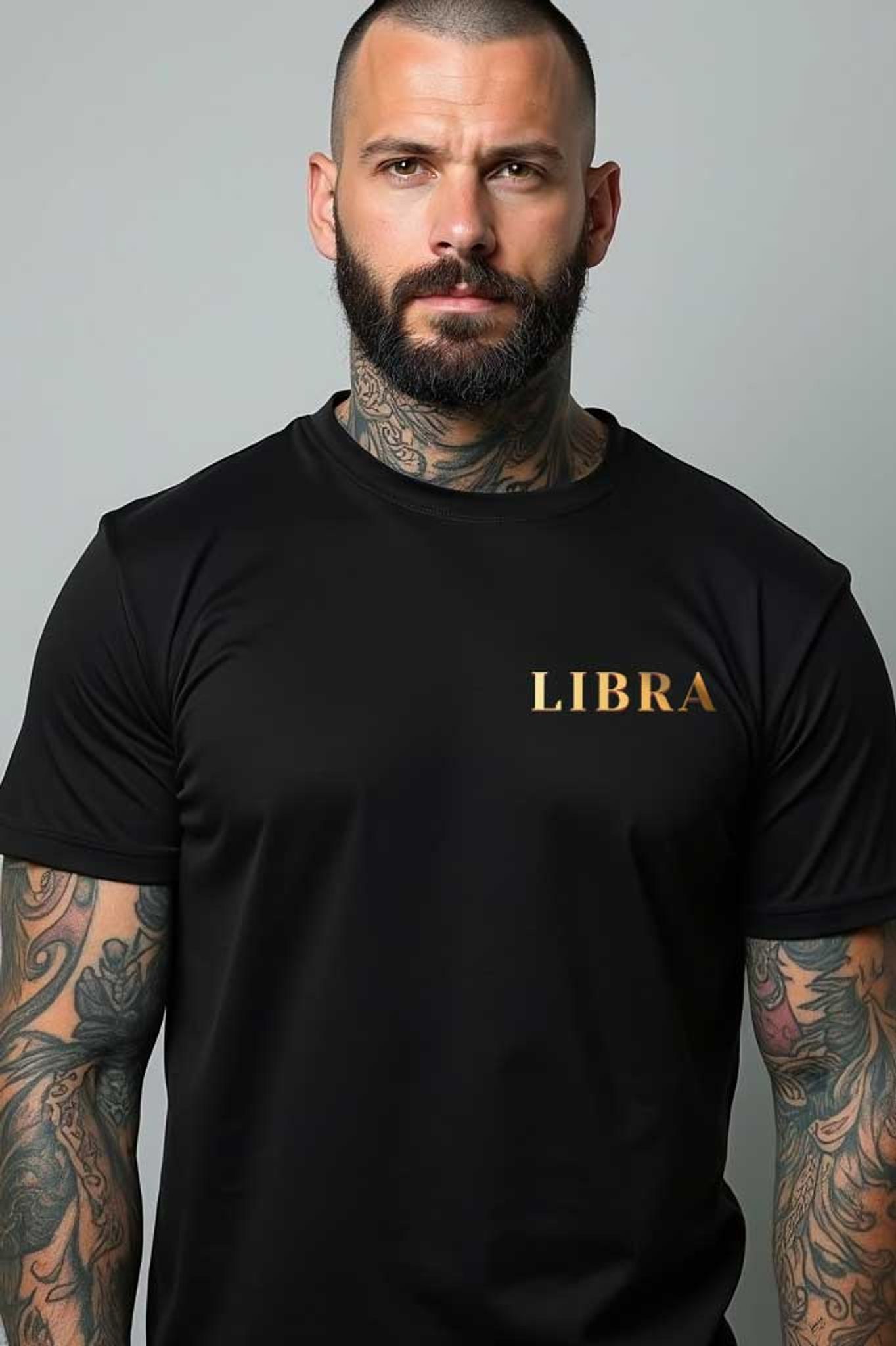 Denna T-shirt är skapad för dig som är född i stjärntecknet Vågen – den naturliga fredsmäklaren och rättvisekämpen i zodiaken. Med "Libra" tryckt på bröstet och en kraftfull illustration av en balanserad gestalt med vågskålar på ryggen, uttrycker designen både styrka och strävan efter harmoni.