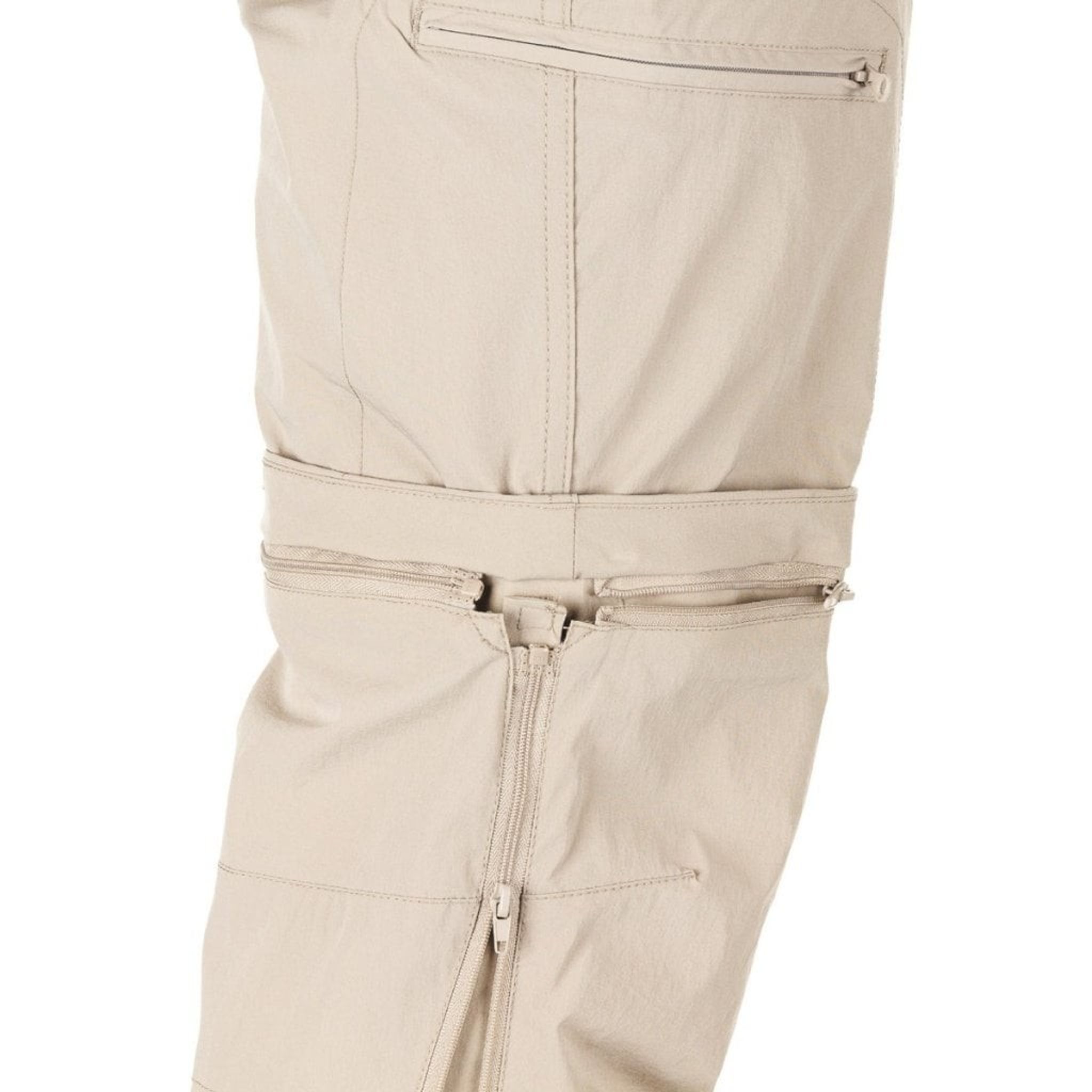Det är en dragkedja mitt på benet vilket gör att man kan förkorta byxorna utan att man behöver ta av skorna.