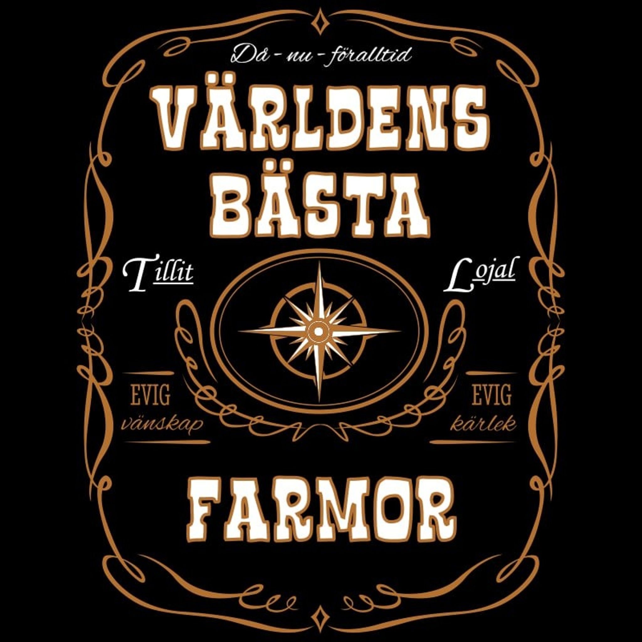 Designen i svart med gyllene text erbjuder en elegant kontrast som fångar ögat. Texten 'Då - nu - för alltid' tillsammans med ord som 'Tillit', 'Evig vänskap' och 'Evig kärlek' är en vacker påminnelse om de band som varar livet ut.