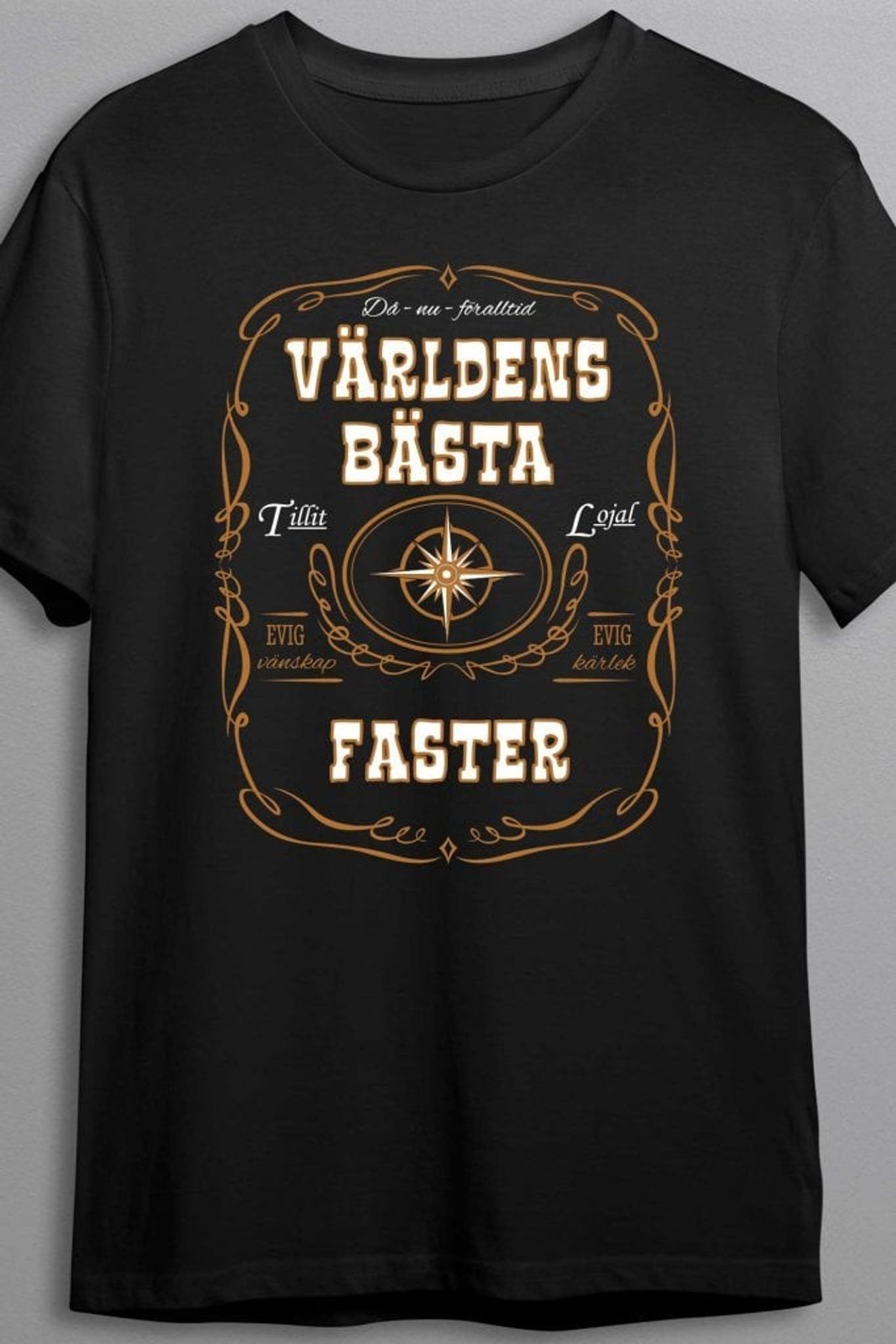 Designen är enkel men kraftfull, med orden 'Världens bästa faster' omgivna av dekorativa element som symboliserar tillit, lojalitet och evig vänskap och kärlek. Den svarta färgen och det gyllene trycket ger en elegant och samtidigt rockig känsla.