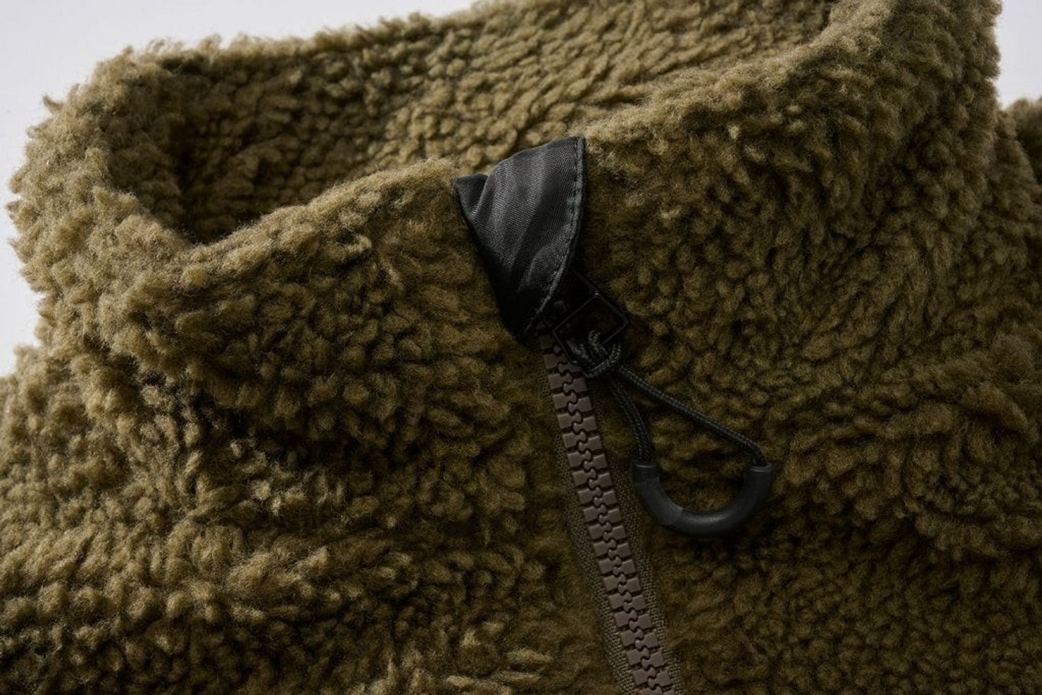 En olivgrön väst i skön teddyfleece. Väst är det perfekta plagget när du vill hålla kroppen varm men ändå lämnar ärmarna fria och rörliga.