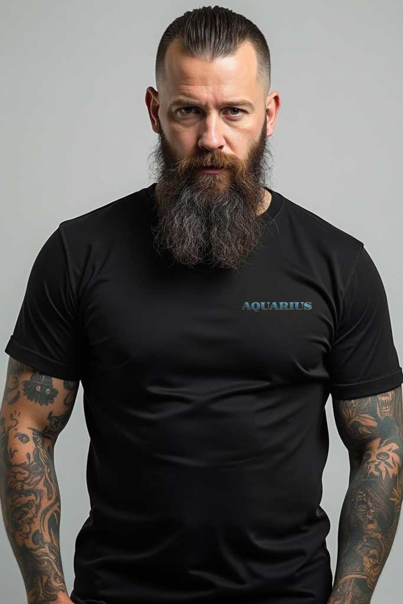 Denna unika T-shirt är perfekt för dig som är född i stjärntecknet Vattumannen. Med "Aquarius" tryckt över bröstet och en kraftfull illustration på ryggen som visar den legendariska vattenbäraren, är detta plagget som fångar Vattumannens frihetslängtan, nytänkande och individualism.