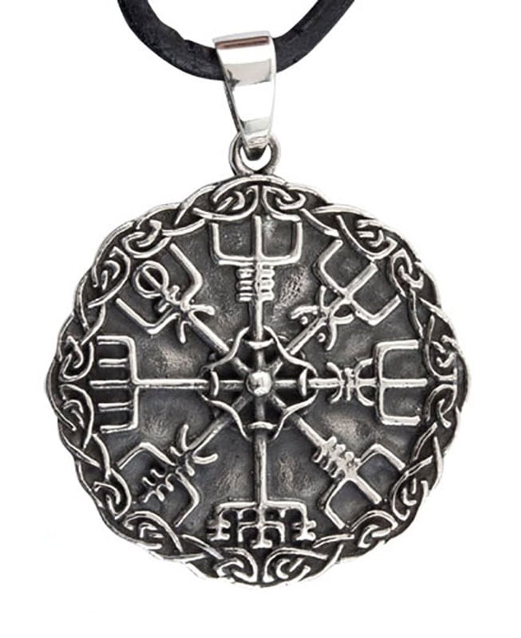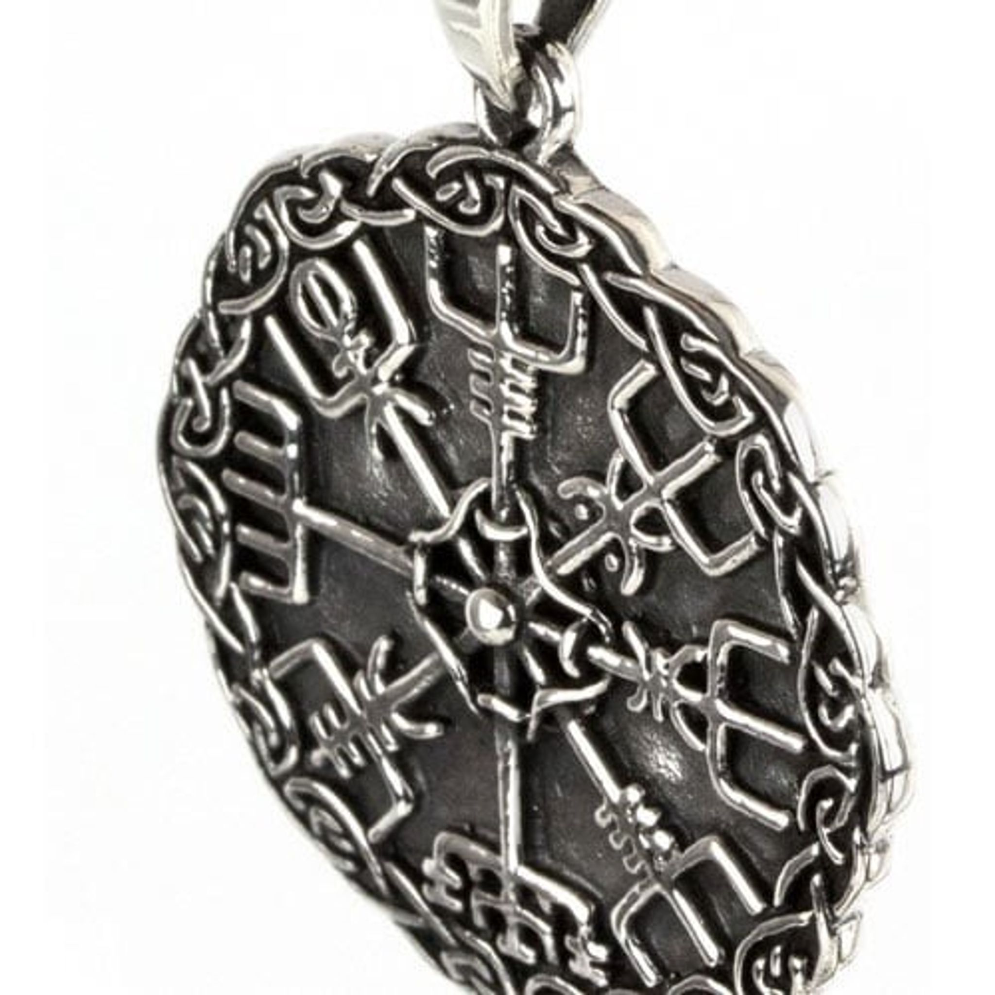 Långt innan kompassen uppfanns seglade vikingarna till Island, Grönland och Ryssland med sina skepp. Sjöfolk använde så kallade "solstenar", genomskinliga kalcitstenar, som navigationsinstrument. Amuletten 'Viking Compass' består av den isländska symbolen 'Vegvísir' som finns i mitten med runalfabetet runt. Förr trodde man att Vegvísirs och runornas magiska stavar kan hjälpa bäraren att få en säker resa och hitta sin väg, även under tuffa förhållanden.
