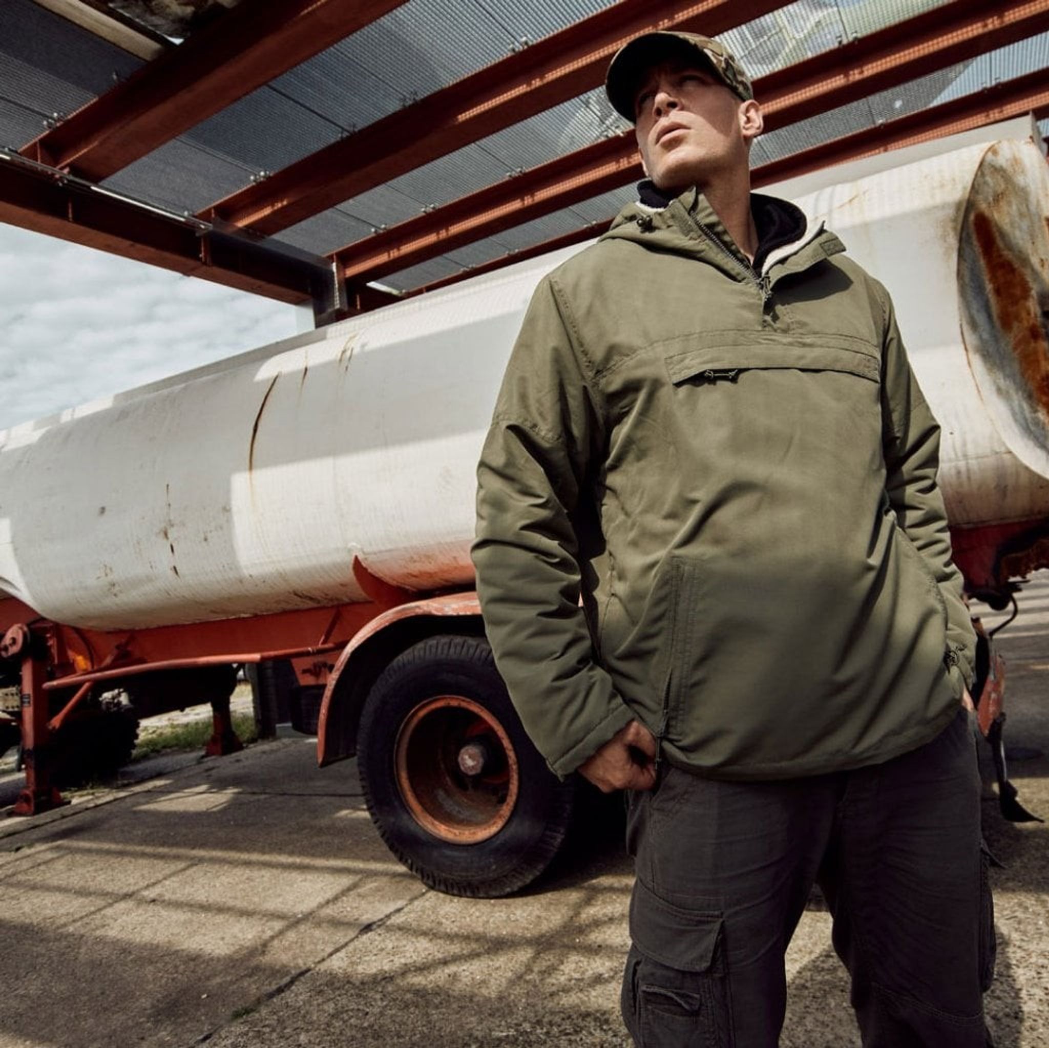 På jackan hittas en stor bröstficka samt två sidofickor. Samtliga fickor försluts med dragkedja.