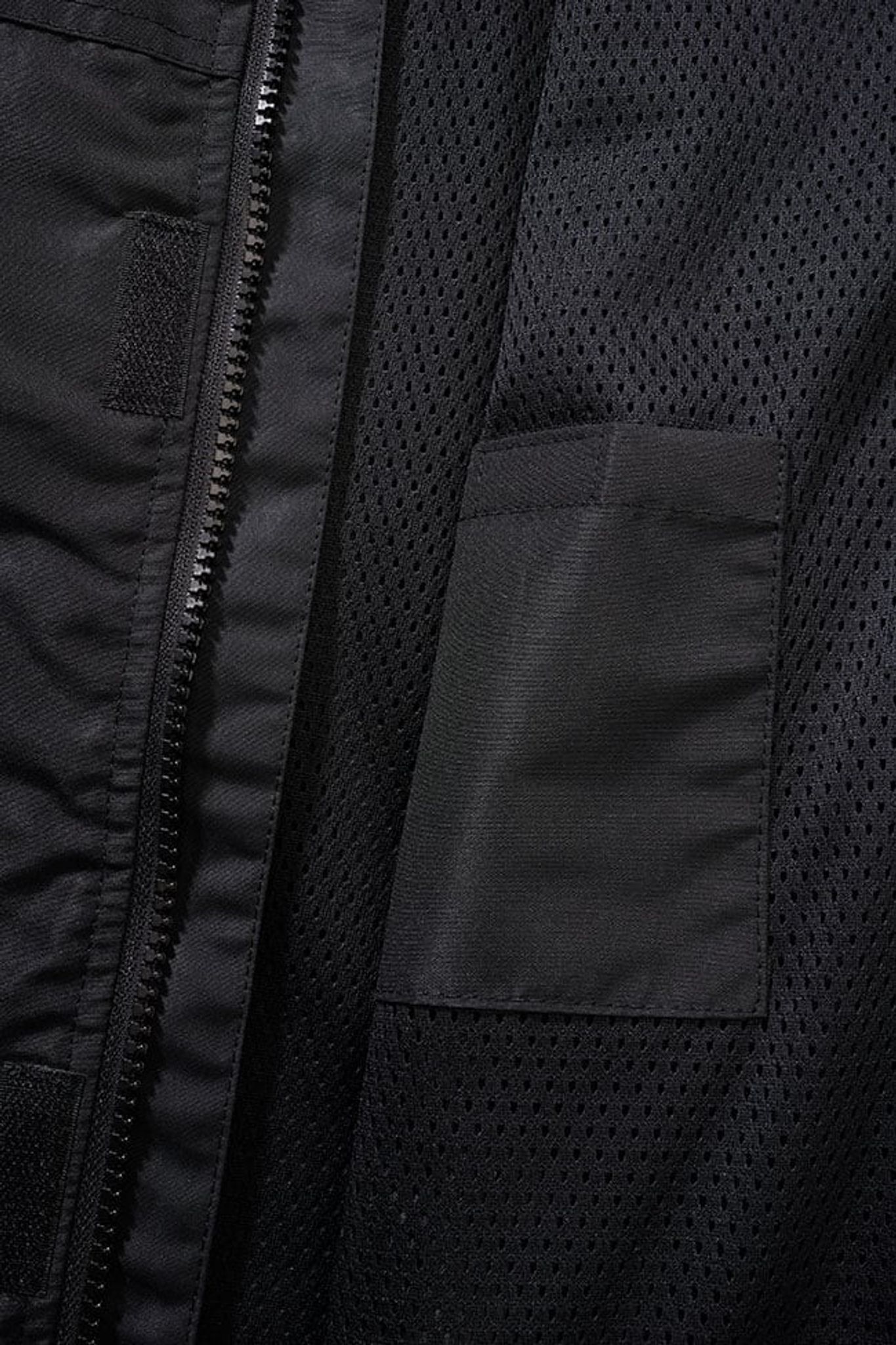 Jackan öppnas och stängs med en robust dragkedja som skyddas av stormflap som sluts med kardborreband. Jackan har två sidofickor som stängs med dragkedja samt en innerficka som stängs med kardborreband.