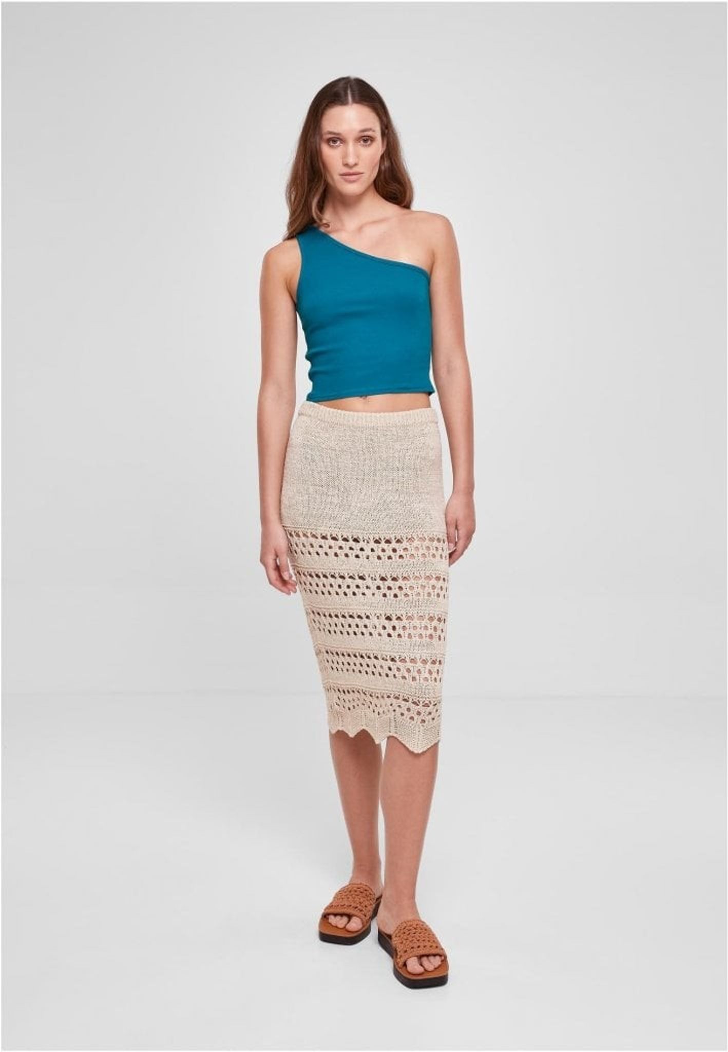 Vår virkade damkjol 3/4 är tillverkad av 100% bomull. Kjolen har en lös passform och är 3/4 lång. Den har en knäppning framtill och är försedd med två fickor. Kjolen är tillgänglig i färgerna svart, grå och beige. Den är lätt att ta hand om och kan maskintvättas. Kjolen är perfekt för att skapa en stilren och bekväm look.