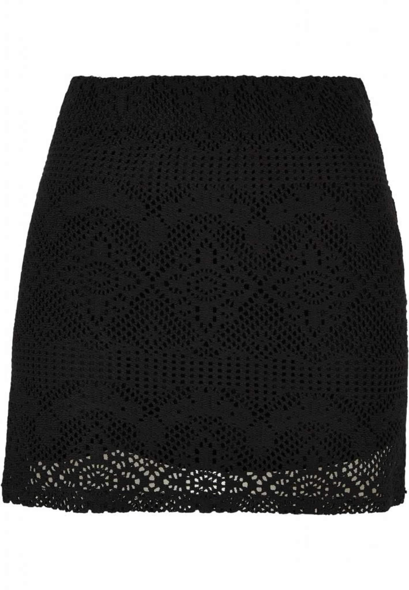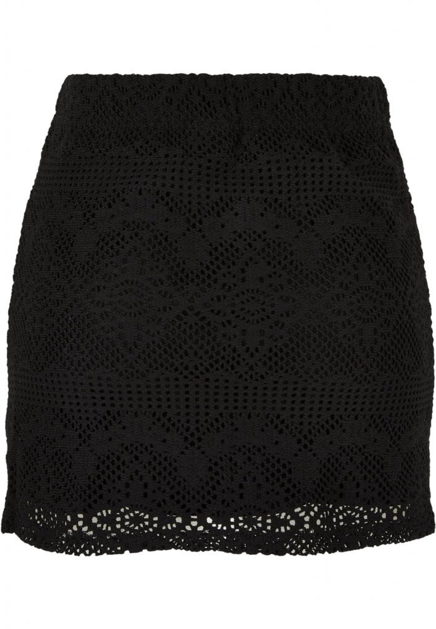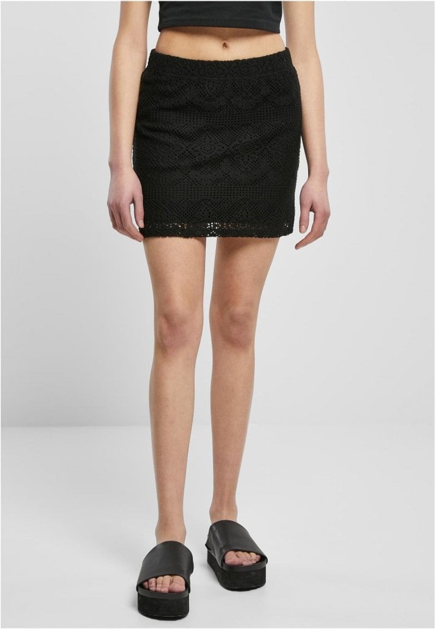 Den virkade minikjolen i spets har en elastisk midja som sitter säkert på midjan. Dess speciella drag är en delikat, transparent spets gjord av bomull och polyamid. Kjolen är fodrad med opak single jersey och har en bekväm, regelbunden passform.