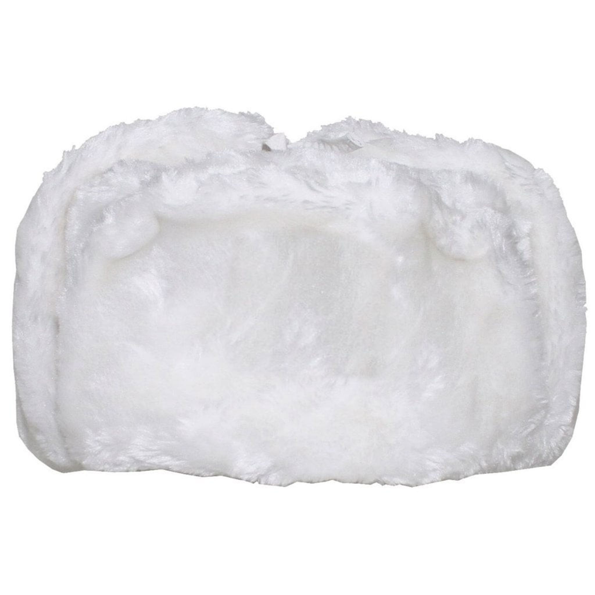 Denna vita ushanka har ett polyestertyg på huvuddelens insida och resten av mössan har konstpäls.