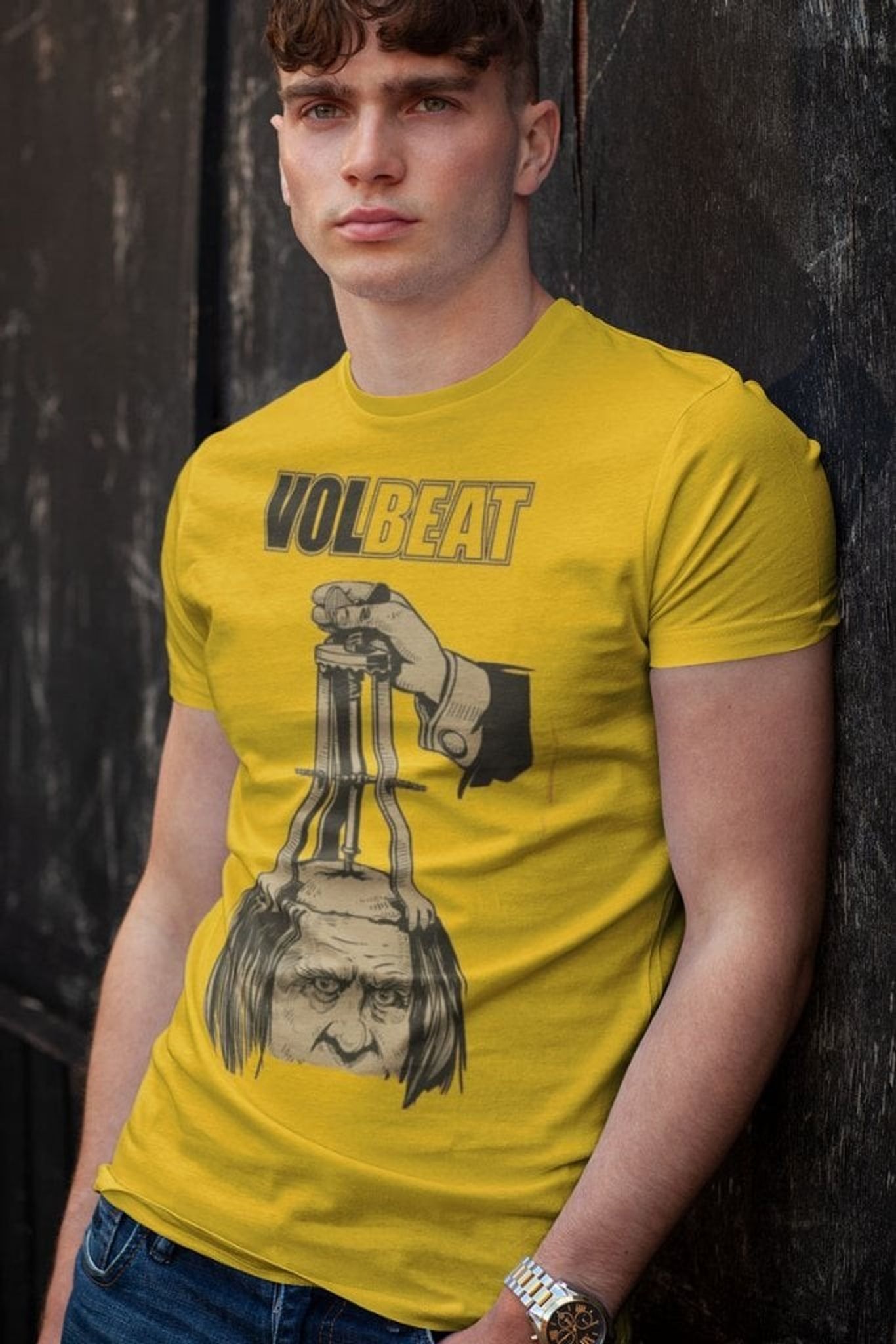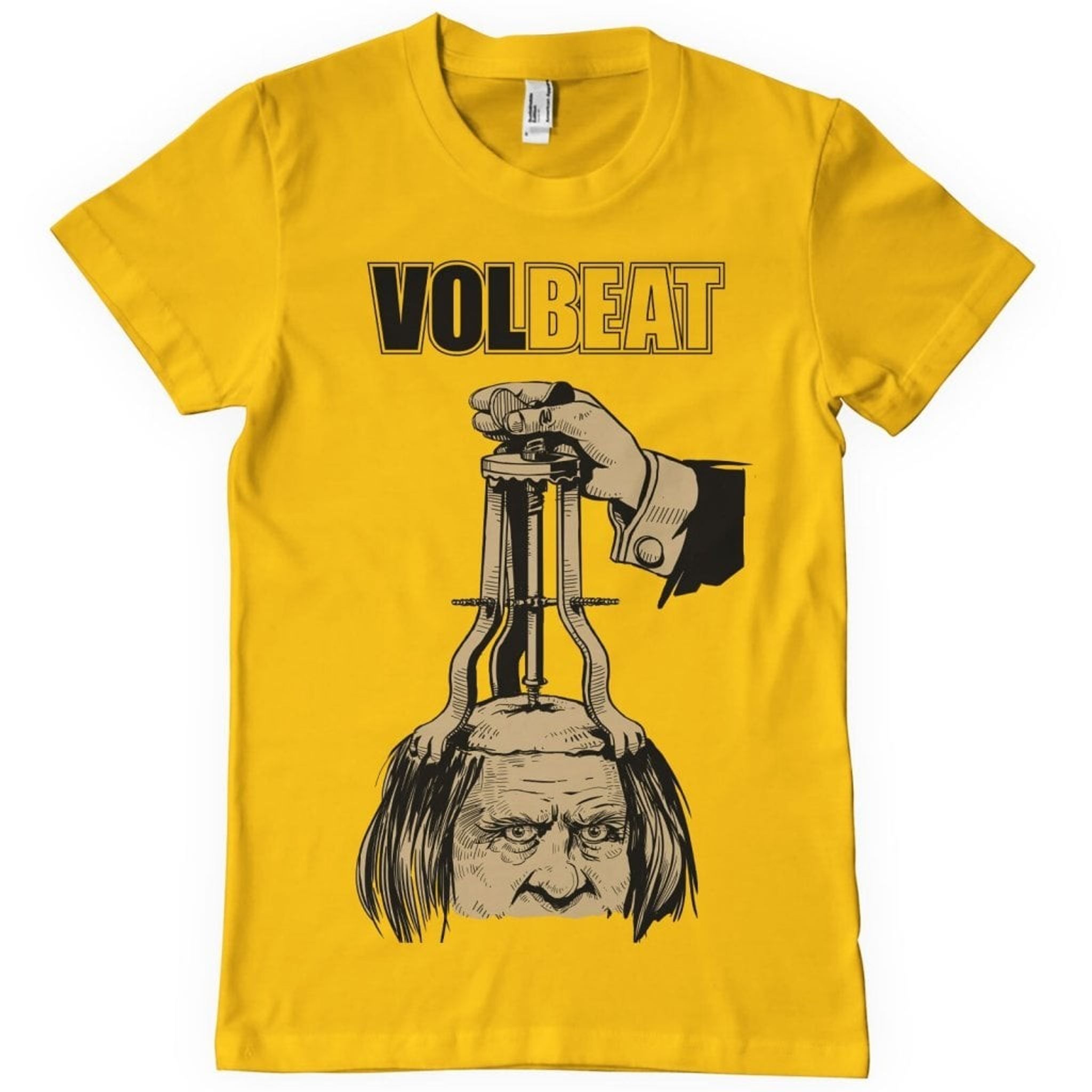 Denna T-shirt är inte bara en vanlig tröja - den är en portal till en värld av rock'n'roll och mystik. Motivet på plagget visar ett förvrängt huvud som pressas av en antik medicinsk apparat, vilket ger en känsla av smärta och intensitet. En elegant ärm håller i apparaten, skapar en kontrast mellan det brutala och det raffinerade - precis som i Volbeats musik.