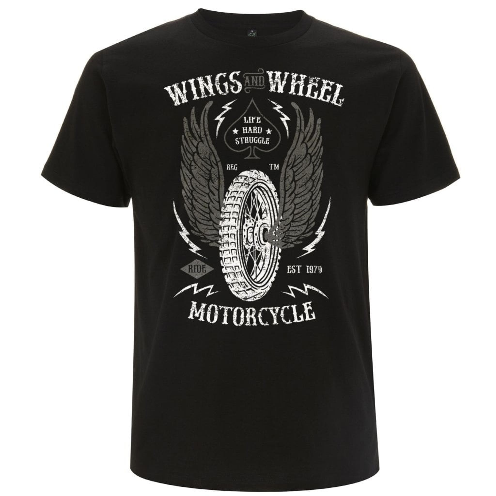 En riktigt snygg t-shirt med ett bevingad motorcykeldäck.