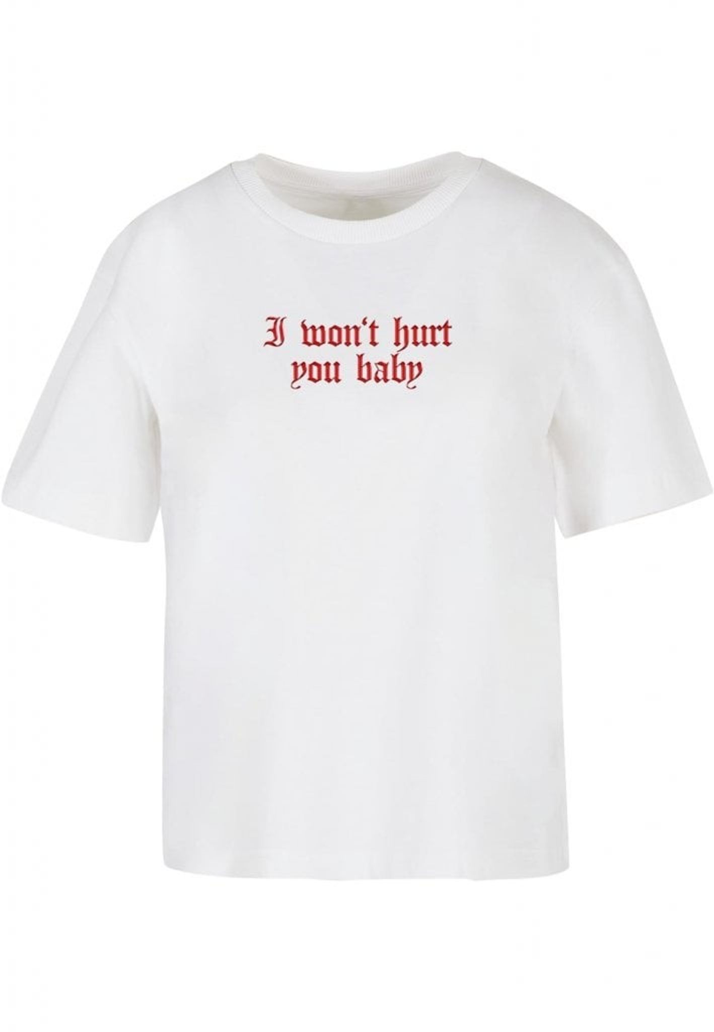 De röda naglarna är dekorerade med vita prickar, vilket tillför en känsla av elegans och skönhet till den annars råa och aggressiva gesten. Det är som att säga "Jag kan vara tuff och elegant samtidigt - precis som denna T-shirt."